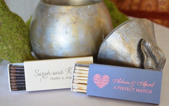 Personalized Matchbox Favors With 18 Wood Matches For Wedding